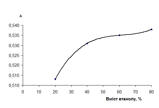 2.4.2 Дослідження впливу етанолу на визначення цукрів з пікриновою кислотою