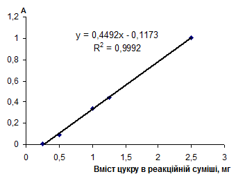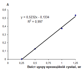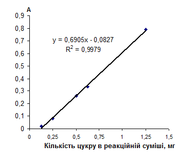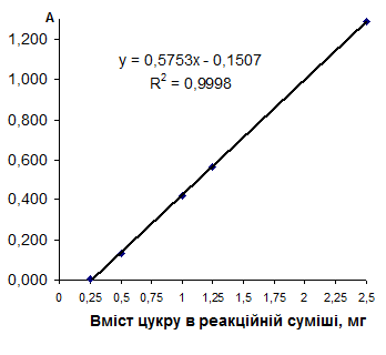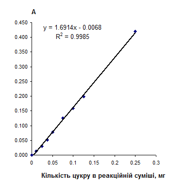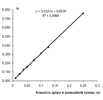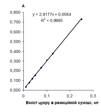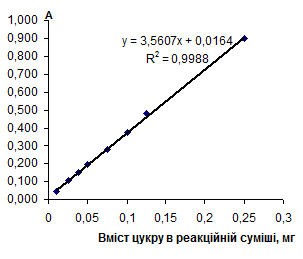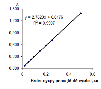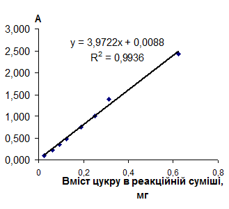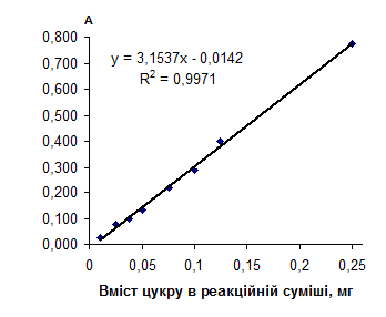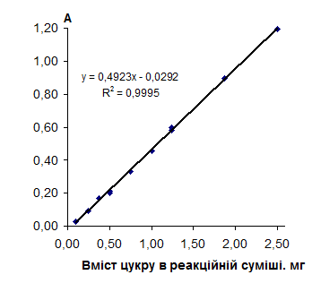 Визначено, що чутливість реакції вуглеводів з антроновим рагентом в 30-50 разів вища, ніж чутливість визначення відповідних вуглеводів з пікриновою кислотою.