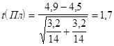 Результаты t - теста оказались следующими: