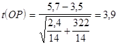 Кроме этого, так как результаты по шкале «моделирование» у высоко и низкоагрессивных учеников совпадают, но отличаются на 1,3 балла от умеренноагрессивных, я высчитал значимость этого расхождения по той же формуле, но уже между, высоко и умеренно агрессивными.