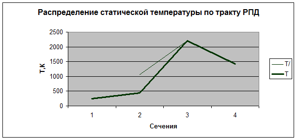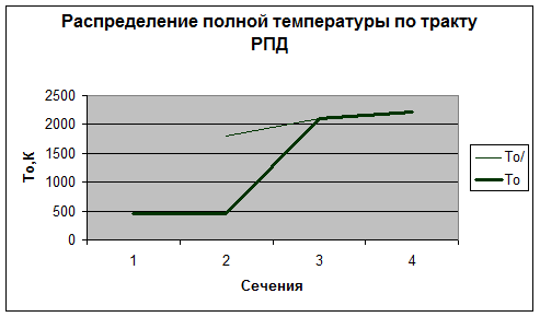Режим максимальной тяги (РМТ) характеризуется значением коэффициента избытка окислителя .Учитывая, что величина относительного подогрева не должна превышать предельного ее значения, получаем значение α=1,51. Это значение коэффициента избытка окислителя будем использовать в дальнейших расчётах.