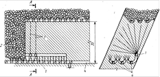 Система подэтажного обрушения с отбойкой руды глубокими скважинами на зажатую среду (рис.9) разработана сравнительно недавно. Однако уже накоплен значительный положительный опыт применения этой системы разработки. Так, в условиях Криворожского бассейна, например, при отбойке на зажатую среду достигается лучшее дробление руды, чем при отбойке на компенсационные пространства.
