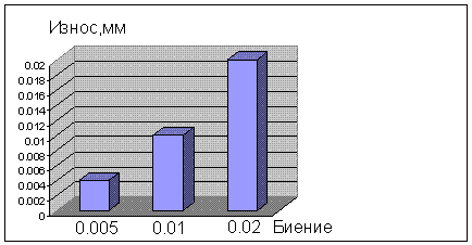 Следующий фактор – режущий и вспомогательный инструмент. Ведущие инструментальные фирмы предлагают сегодня широкую гамму фрез для ВСО с подробными рекомендациями по областям их применения и режимам резания. Разрабатываются новые мелкодисперстные сплавы способные надежно работать на высоких скоростях. Более важно обратить внимание на системы вспомогательного инструмента, которые обеспечивают крепление фрез. В связи со снижением сил резания в процессе ВСО на первый план выходят другие факторы – величина биения фрезы, вибрации, инерционные нагрузки и силы, возникающие при этом становятся соизмеримыми с силами резания. Биение инструмента сильно влияет на износ. Это подтверждают данные экспериментов из графика на зависимости износа от биения инструмента, где видна практически линейная зависимость износа от биения при высоких скоростях резания. Таким образом, ВСО требует особого внимания к балансировке инструмента. Для этого могут использоваться специальные патроны с возможностью балансировки или балансированные оправки для термозажима. Специально для высокоскоростной обработки спроектированы конусы HSK, которые обеспечивают более высокую жесткость зажима.