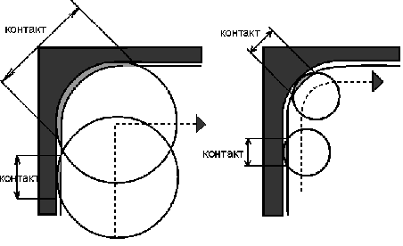 • сопряжение по радиусу острых углов траектории для поддержания наилучших условий резания с минимальными потерями рабочей подачи;