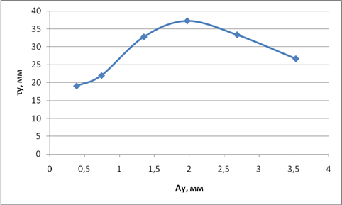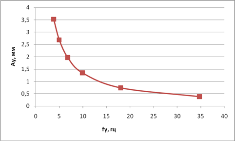 Рисунок 2 - Зависимость амплитуды перемещения выходного звена от частоты перемещения для 100 ͦ С