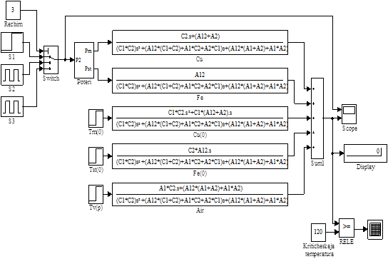 Основной целью данной работы является создание тепловой модели для выбора асинхронного двигателя по нагреву. Данная модель является упрощенным представлением процессов нагрева и охлаждения двигателя. Суть модели заключается в том, что, задавая характер изменения нагрузки во времени на входе, на выходе имеем кривую изменения температуры меди обмоток или стали статора.