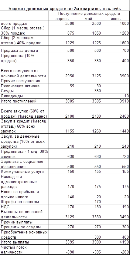 Результат предыдущих расчетов представляет собой чистый денежный поток предприятия на период бюджета.