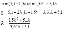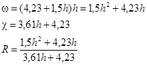 h=1,37 м b=4h=5,48 м ω=5,5h2