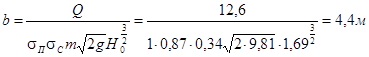 Окончательно принимаем: Р=0,4 м., b=4,4 м., δ=3Н≈5 м.