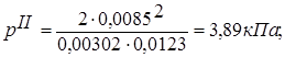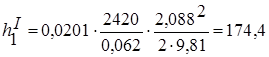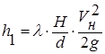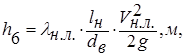 – внутрішній діаметр вхідної та вихідної лінії, м.