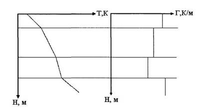 Из условия постоянства теплового потока для различных пластов следует, что произведение градиента температуры на теплопроводность одинаково для различных пластов, в которых не наблюдается тепловыделение (рис.2.1)