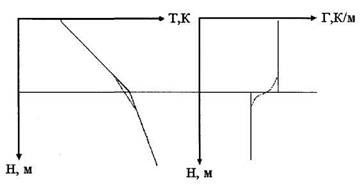 Рис.2.1 Схематическое распределение температуры (Т) и градиента температуры (Г) в