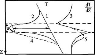 Рис.2.3 Схематическое распределение температуры и градиента температуры