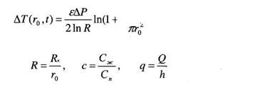 Восстановление исходного распределения температуры в стволе скважины после возмущения (промывкой, резким изменением давления и др.) происходит путем теплопроводности. Медленнее всего изменяется температура на оси скважины, для оценочных расчетов можно пользоваться формулой