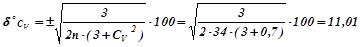 Величину відносної середньоквадратичної похибки коефіцієнта варіації δСV