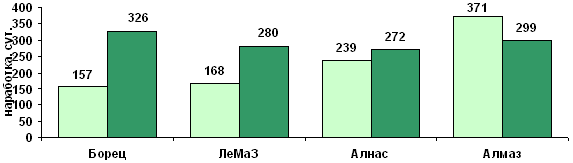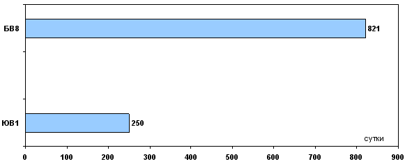 В эти же годы по Рославльскому месторождению с четырех кустов 1, 6, 8 и 5 были пробурены 57 наклонно- направленных скважин, из них 21 скважина на БВ8 и 33 скважины на ЮВ1 и ЮВ2, и 3 водозаборные скважины (1, 2 и 3).