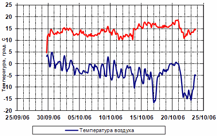Тип сезонного промерзания и оттаивания грунтов по среднегодовым температурам пород и амплитудам температур на поверхности грунтового массива – полупереходный (от 2 до -1°С) с редкими участками переходного (от 0 до -1°С). Для территории данной геокриологической зоны характерно чередование по площади талых и многолетнемерзлых пород с температурой, близкой к 0°С. В рассматриваемой зоне распространен переходный тип сезонного промерзания и протаивания. Мощность сезонного слоя, сложенного торфом, составляет 0.45-0.8м, на слабозалесенных участках с бугристым микрорельефом – 0.35-0.6м. Глубина сезонного протаивания колеблется от 1-2м на залесенных грядах, сложенных песками, супесями и суглинками, до 0.4-0.65м на болотах и на залесенных торфяниках.