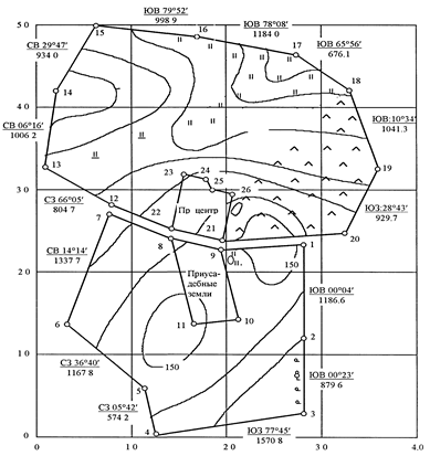В соответствии с требуемой точностью проектируемых площадей и характером границ участков запроектировать: