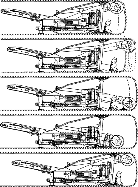 поток высоконапорного орошения – форсунки установлены на корпусах приводов резания и остове комбайна;