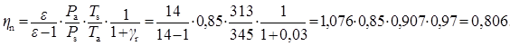 Розрахунок параметрів стиснутого повітря і ККД компресора.