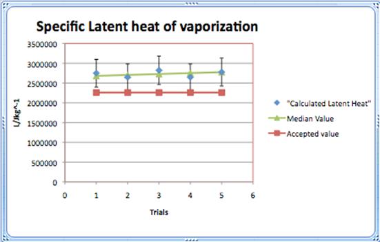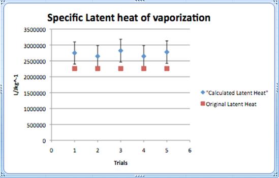 The calculated value of the specific latent heat of vaporization was supposed to be 2.3 x 106