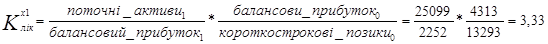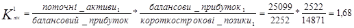 Теоретичне значення К1 не менше 2 – 2,5. Це означає, що на кожну гривню короткострокових зобов’язань підприємство повинно мати 2 – 2,5 гривні ліквідних активів.