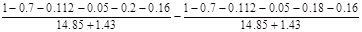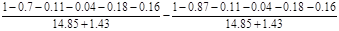 Р=(1-МЗ/Рр+ЗП/Рр+В/Рр+А/Рр+ІВ/Рр)/(ОВФ/Рр+НОЗ/Рр), де