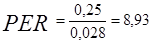 де PER – відношення ринкового курсу до чистого прибутку на одну акцію.