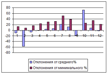 Отклонение месячного показателя от минимального (9-й месяц) |