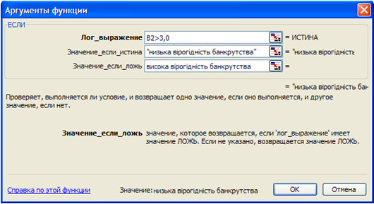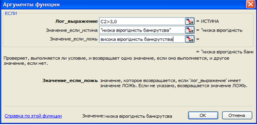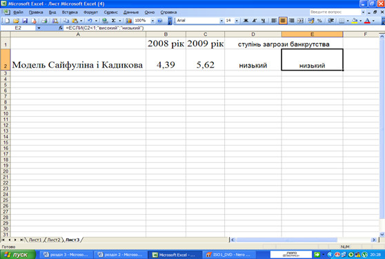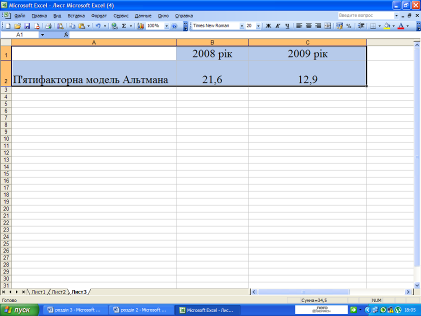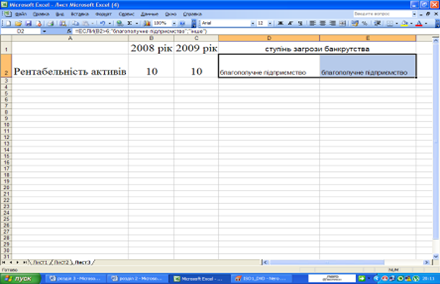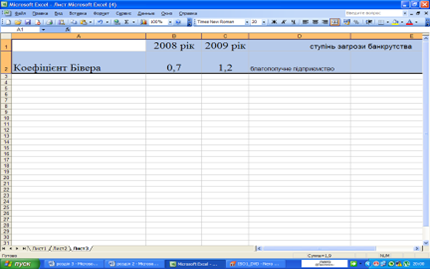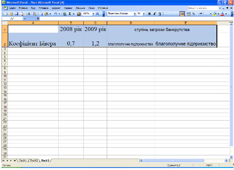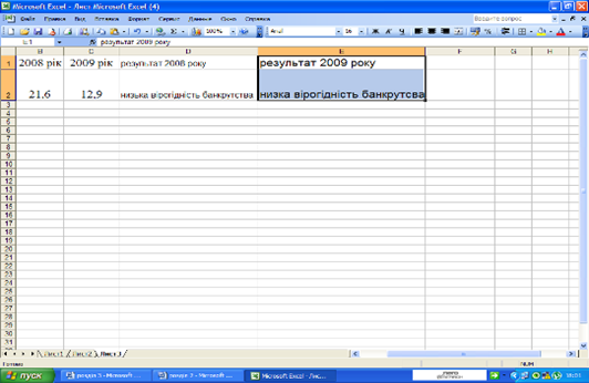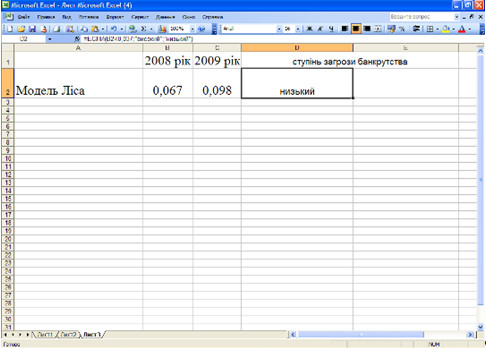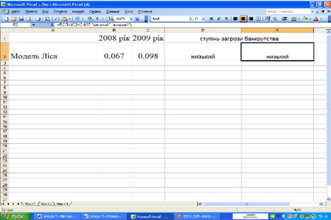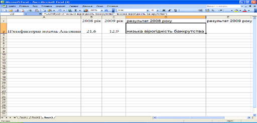 3.2 Формування аналітичних висновків про оцінку вірогідності банкрутства підприємства шляхом застосування програми Excel