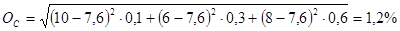 Оценим риск по каждому варианту финансового актива по данным предыдущего примера, при этом вероятности доходности составляют: наиболее вероятная - 60 %, пессимистическая оценка - 30 %, оптимистическая оценка - 10 %.