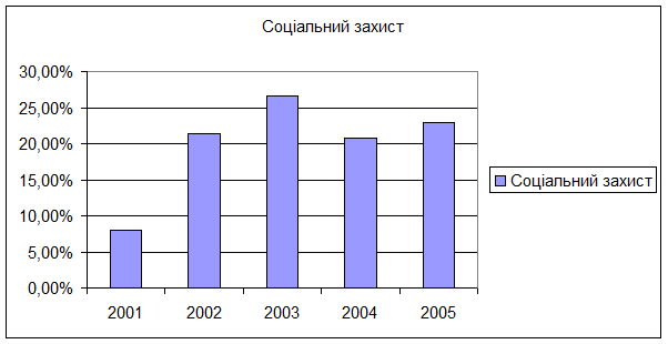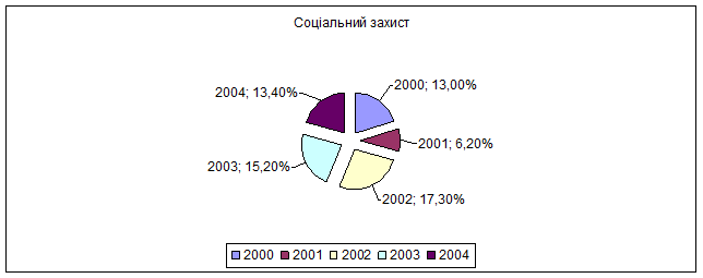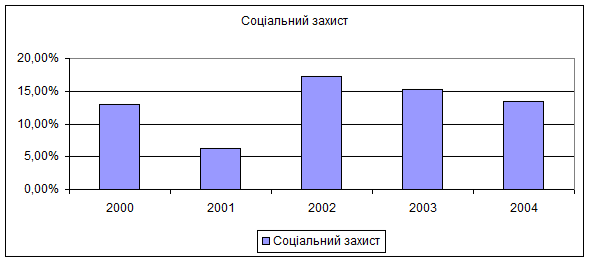 - витрати на житлові субсидії.В порівнянні з 2000р.у 2004р.витрати бюджету на соціальний захист збільшились меньш чим на 1%