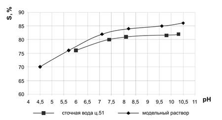 Характер зависимостей показывает, что наивысшая степень очистки достигалась при плотности тока 1А/дм2