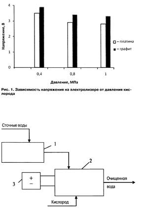 Сточные воды поступают в усреднитель, затем — в автоклав-электролизер, где происходит электрохимическое окисление. Начальное давление кислорода создается при подаче из баллона высокого давления, затем давление поддерживается выделяющимися при электролизе газами. Процесс проводят при плотности тока 100 — 200А/м2