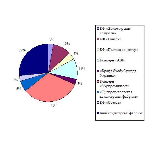 Коливання цін по галузі, як я вже відзначала незначно. Аналіз анкетних даних дозволив також зробити висновок, що продукція ЗАТ «Львівська кондитерська фабрика «Свsточ» і «Київська кондитерська фабрика ім. К. Маркса» користуються найбільшою популярністю серед споживачів. Це пояснюється оптимальним співвідношенням ціни і якості. Крім того, великий попит на продукцію саме даних підприємств можна пояснити й існуючою більшою кількістю споживачів, які орієнтуються на конкретного виробника. Дані підприємства відомі не одному поколінню українців як виробники традиційно якісної продукції. А тому що вітчизняні виробники через своєї ментальностs не відрізняються особливо легким сприйняттям нового, переваги й далі залишаються на стороні цих підприємств.