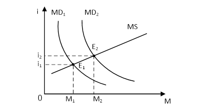 Рисунок 2. Изменение равновесия на рынке денег под воздействием неценовых факторов спроса на деньги
