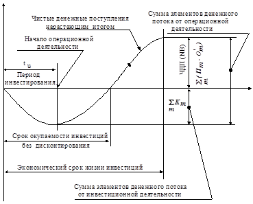 В работе рассмотрены не только количественные, но и качественные критерии оценки эффективности. Отмечено, что количественные критерии исключительно важны, поскольку они поддаются более четкой интерпретации, имеют высокую степень определенности, являются сравнимыми в пространстве и времени. Автором представлена графическая интерпретация оцениваемого инвестиционного проекта.