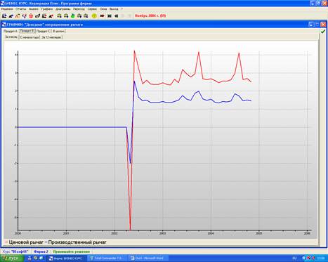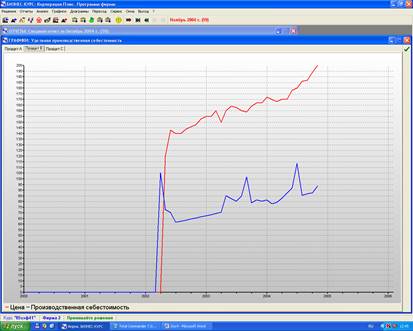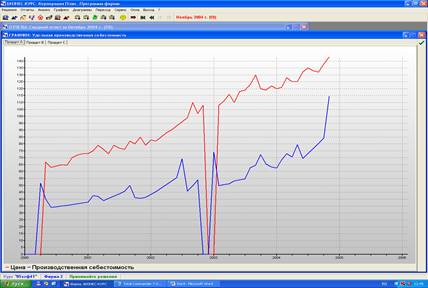 Показатели цены на продукт А в основном выше показателей производственной себестоимости, это свидетельствует о том что при производстве продукта А фирма будет получать прибыль. В конце 2002 года 4 квартале производство продукта А прекратилось, что видно по нулевым значениям показателей цены и производственной себестоимости.