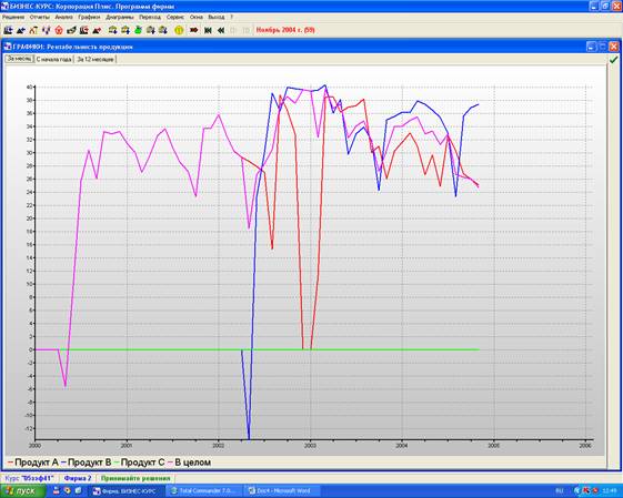 Рейтинг имеет возрастающий характер на протяжении всего процесса с небольшими спадами, наибольший спад происходил в 3,4 квартале 2004 года. Фирма №2 заняла в итоге 7 место .