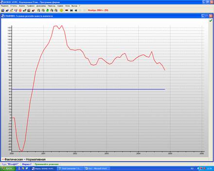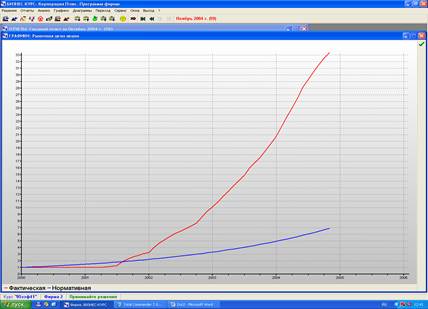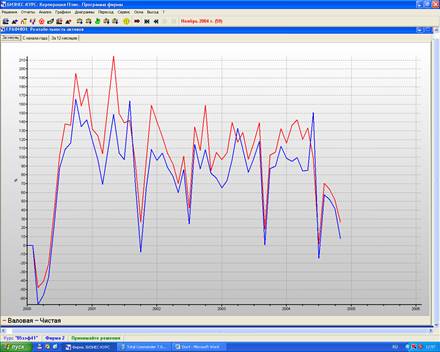 Годовая чистая прибыль на протяжении всего производственного процесса возрастает, за исключением некоторых периодов, когда наблюдается небольшой спад, например, в 2 квартале 2000 года произошел спад, после которого произошло резкое возрастание фактической чистой прибыли. Также можно сказать, что фактическая чистая прибыль на протяжении анализируемого периода выше нормативной чистой прибыли.