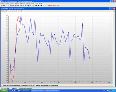 Годовая фактическая рентабельность капитала значительно выше нормативной рентабельности капитала. Наивысшее значение фактическая рентабельность капитала достигла во 2 – 3 квартале 2001 года – 171 %, а самое низкое значение – наиболее близкое к нормативной рентабельности капитала в 4 квартале 2004 года – 80 %.