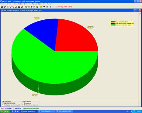В распределении мест на конец октября 2004 года Фирма №2 занимает 7 место, рейтинг составляет 352 балла. Чистая прибыль составляет 2414582 руб. Рентабельность капитала составляет 81,67 %. Рыночная цена акции равна 33,36 рублей. Таким образом, можно сказать, что 7 место в соревновании фирма №2 занимает в основном за счет показателя чистой прибыли.