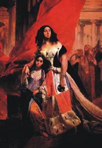 В живописи примером такого противопоставления личности и общества является картина Брюллова "Портрет Ю. П. Самойловой, удаляющейся с бала с воспитанницей Амацилией Пачини".