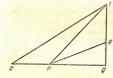 В самом деле уменьшая ее аргумент, рассмотрим отрезок PR<PQ. Перпендикуляр RR к PQ пересекает РР, так как, проводя прямую QS, параллельную RR,мы получим треугольник PQT, одну из сторон которого пересекает RR, а так как RR параллельна QS она пересечет сторону РТ этого треугольника. Таким образом, П(PR)>П(PQ).