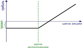 · Опцион на покупку (calloption) - право покупателя опциона ( а не его обязанность) получить от продавца опциона определенную имущественную ценность (акция, займ и т.п.) по установленной цене, либо осуществить расчет, в согласованный срок..