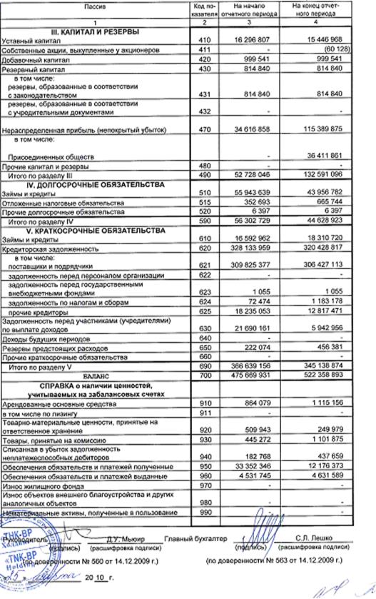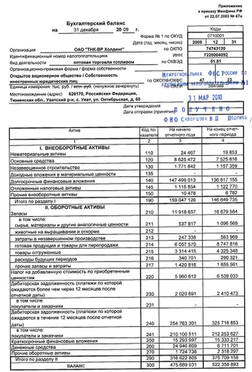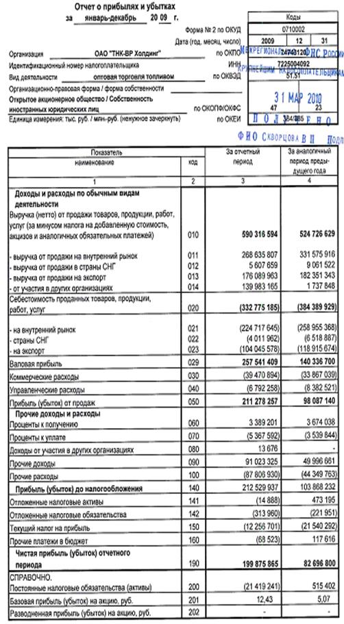 Основой анализа финансово-экономической деятельности «ТНК-ВР Холдинг», проводимого в данной работе, являются формы отчетности №1 «Бухгалтерский баланс» и №2 «Отчет о прибылях и убытках» за 2009 год.
