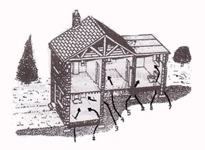 Оказывается, что глинозем, применявшийся десятилетиями в Швеции, кальций-силикатный шлак и фосфоргипс, широко использовавшиеся при изготовлении цемента, штукатурки, строительных блоков, также обладают высокой радиоактивностью. Однако основным источником радона в помещениях являются не строительные материалы, а грунт под самим домом, даже если этот грунт содержит вполне приемлемую активность радия - 30-40 Бк/м3. Наши дома построены как бы на губке, пропитанной радоном! Расчеты показывают, что если в обычной комнате объемом 50 м3, присутствует всего 0,5 м3 почвенного воздуха, то активность радона в ней составляет 300-400 Бк/м3. То есть дома представляют собой коробки, улавливающие радон, «выдыхаемый» землей.