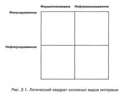 В формализованном интервью влияние интервьюера на качество данных сведено к минимуму, а надежность получаемой информации доведена до максимума. Вводная беседа с респондентом, переходы от одного раздела беседы к другому подробно разрабатываются исследователем и точно воспроизводятся интервьюером.