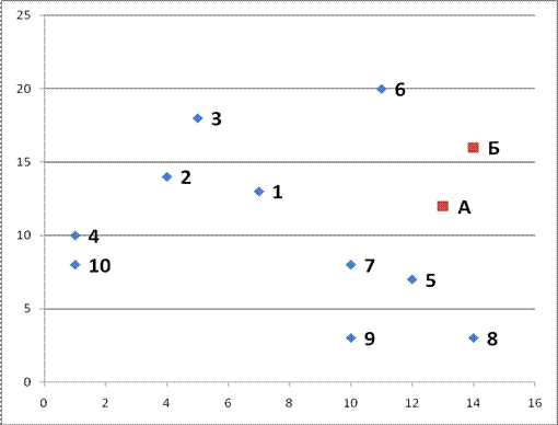 Аналогичным образом рассчитываем все остальные расстояния между пунктами загрузки и разгрузки, а также расстояния только между пунктами разгрузки.