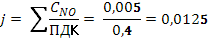 - масса оксид азота, выбрасываемого в атмосферу в единицу времени = 0,286 г/с.
